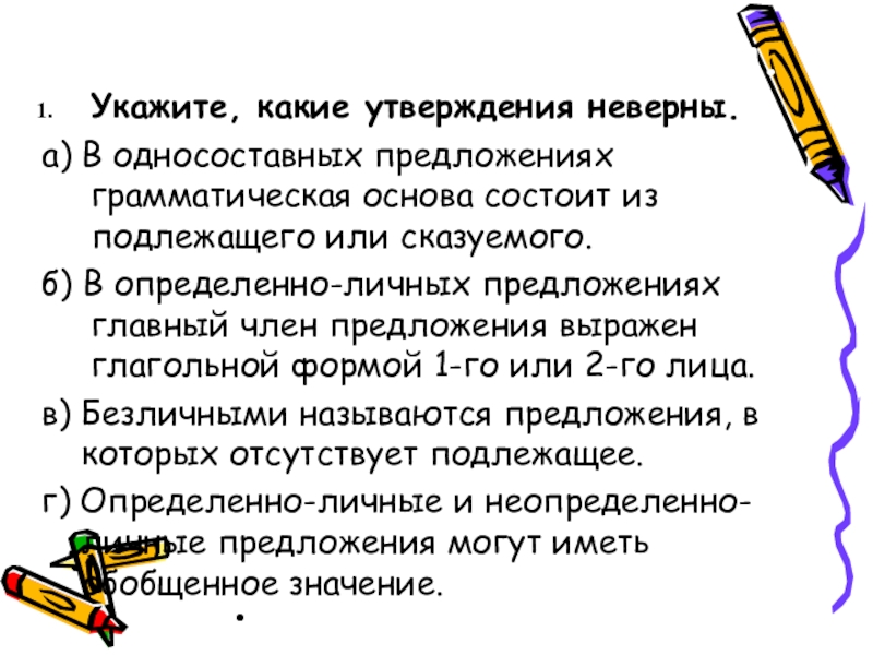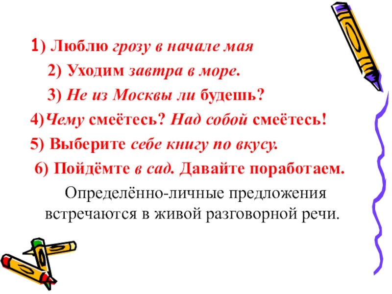 б) В определенно-личных предложениях главный член предложения выражен глагольной формой 1-го или 2-го лица.