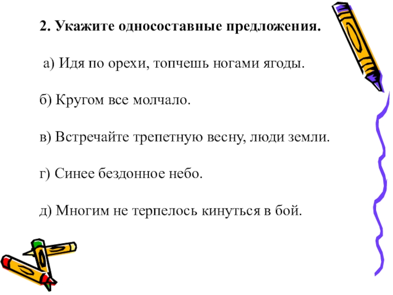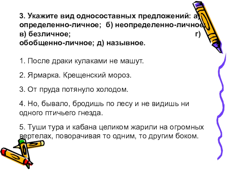 Слайд 173. Укажите вид односоставных предложений: а) определенно-личное; б) неопределенно-личное; в) безличное;