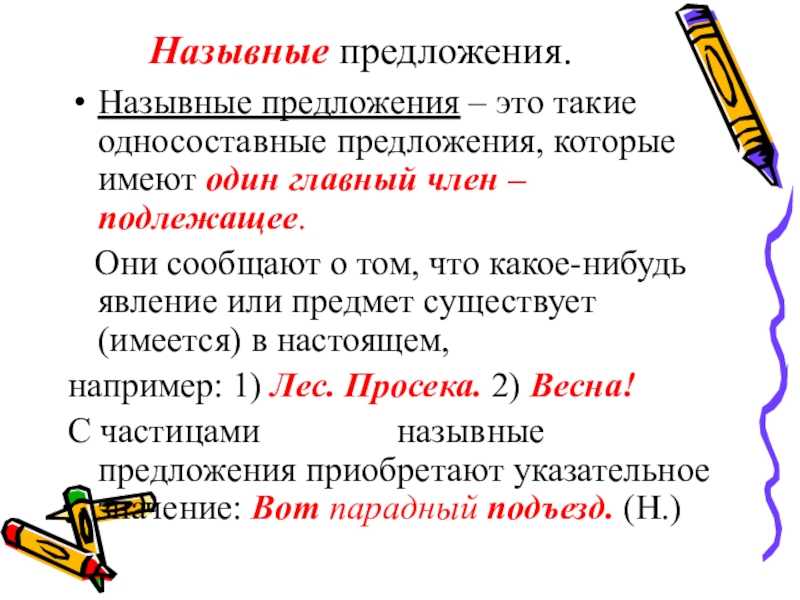 Назывные предложения – это такие односоставные предложения, которые имеют один