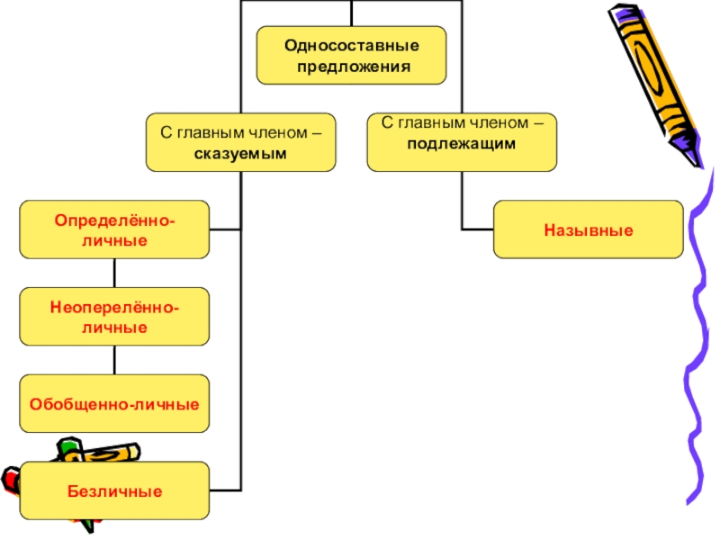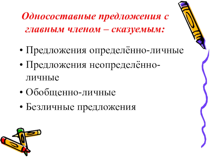Слайд 4Односоставные предложения с главным членом – сказуемым: