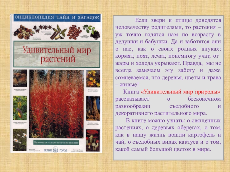 Книга «Удивительный мир природы» рассказывает о бесконечном разнообразии съедобного и декоративного растительного мира.