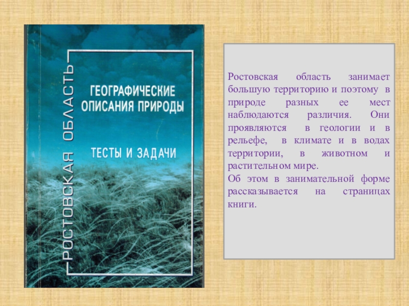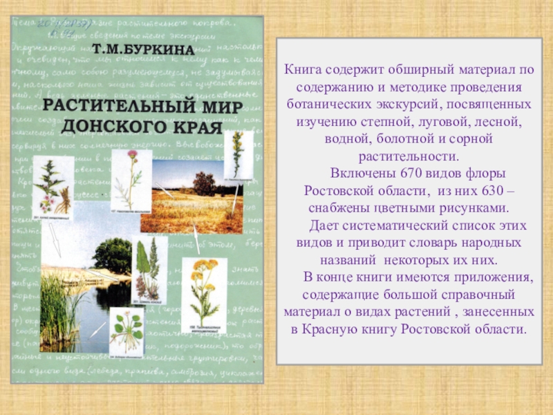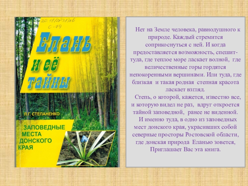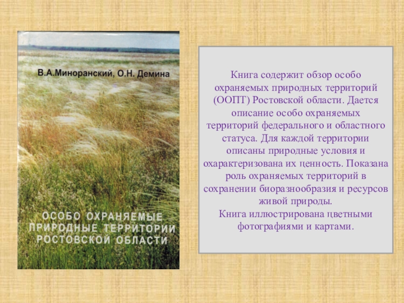 Слайд 22Книга содержит обзор особо охраняемых природных территорий (ООПТ) Ростовской области. Дается