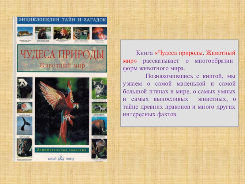 Слайд 11 Книга «Чудеса природы. Животный мир» рассказывает о