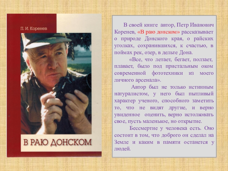 Слайд 21 В своей книге автор, Петр Иванович Коренев, «В