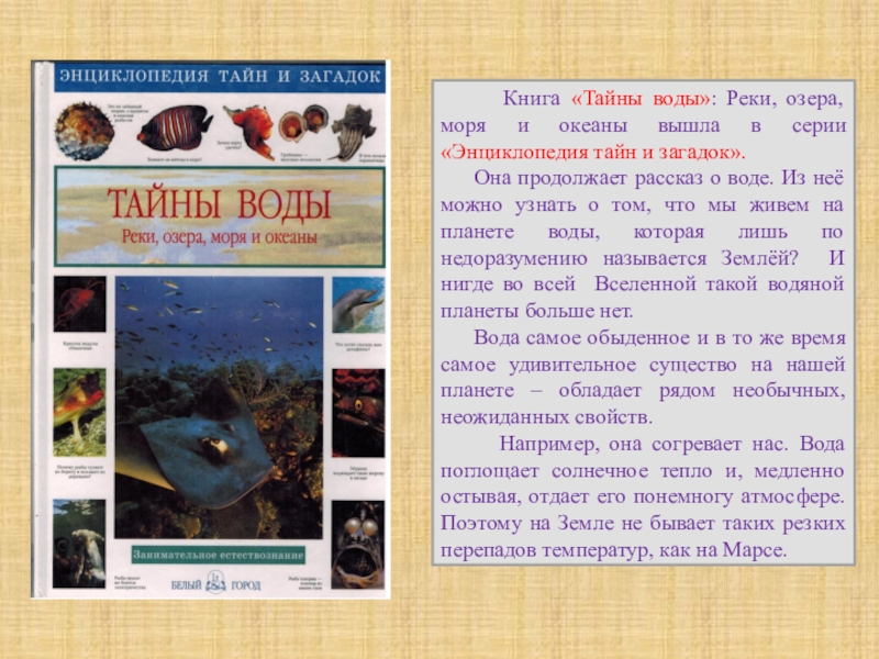Слайд 6 Книга «Тайны воды»: Реки, озера, моря и океаны