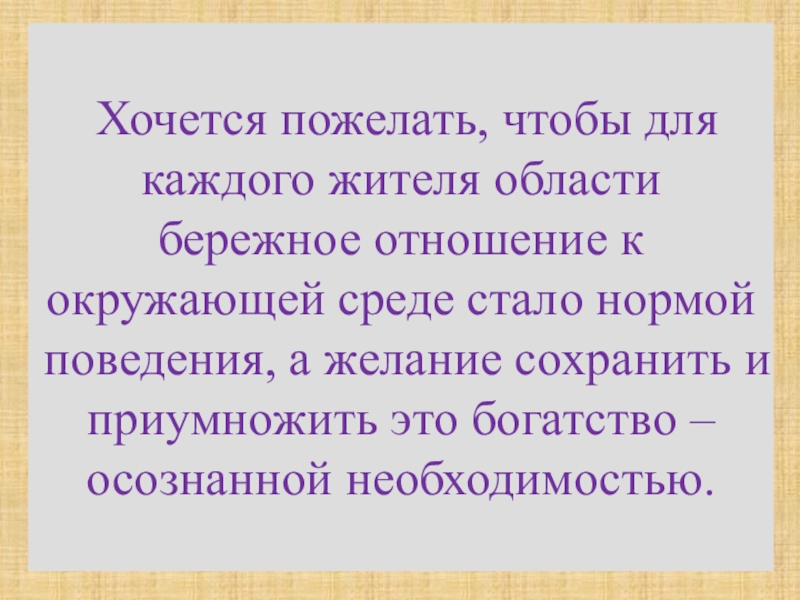 Слайд 32 Хочется пожелать, чтобы для каждого жителя области бережное отношение к