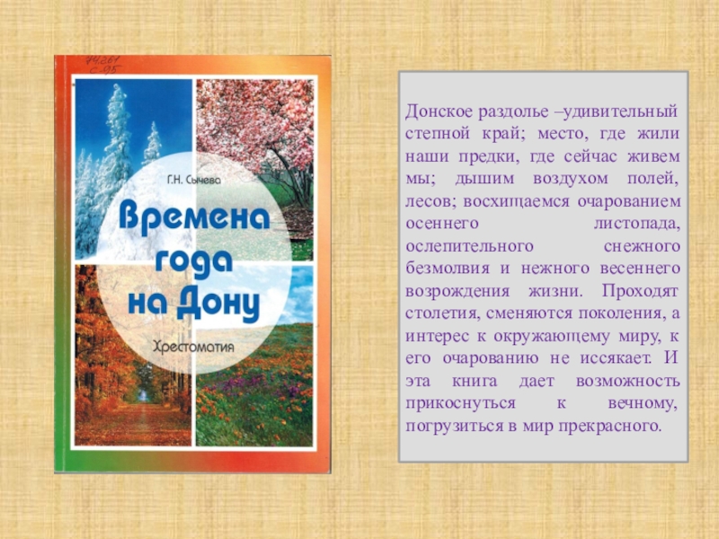 раю донском» рассказывает о природе Донского края, о райских уголках, сохранившихся, к счастью, в поймах рек, озер, в дельте Дона.