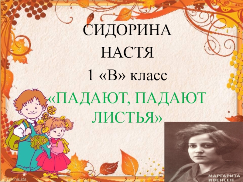 СИДОРИНА НАСТЯ1 «В» класс«ПАДАЮТ, ПАДАЮТ ЛИСТЬЯ»