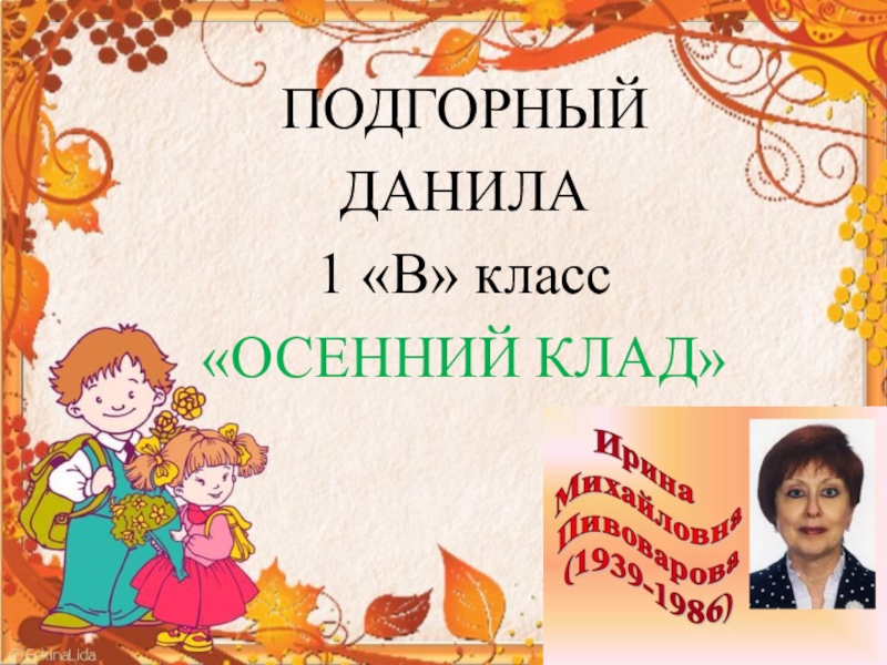 ПОДГОРНЫЙ ДАНИЛА 1 «В» класс«ОСЕННИЙ КЛАД»