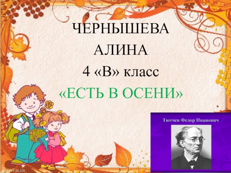 ЧЕРНЫШЕВА АЛИНА4 «В» класс«ЕСТЬ В ОСЕНИ»