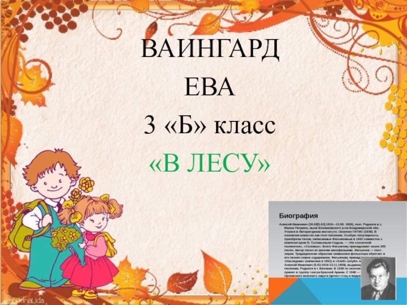 ВАИНГАРДЕВА3 «Б» класс«В ЛЕСУ»
