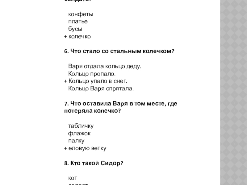7. Что оставила Варя в том месте, где потеряла колечко?