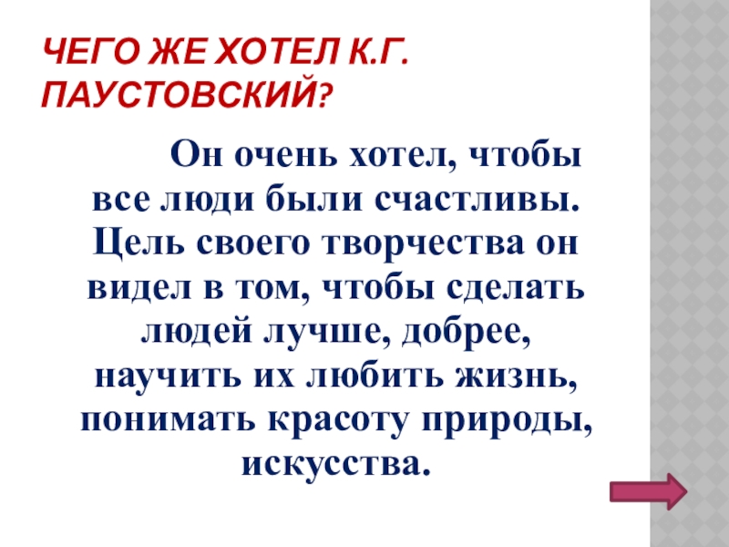 Слайд 26Чего же хотел К.Г.Паустовский?