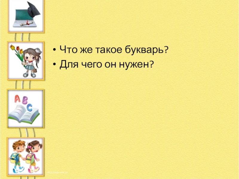 Слайд 3Букварь - первая учебная книга, которая попадает в руки ребенка. С