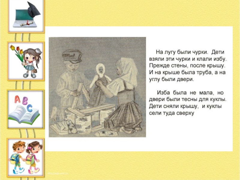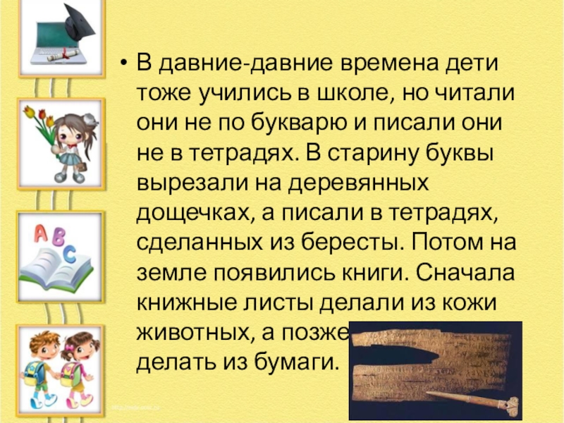 Слайд 4В давние-давние времена дети тоже учились в школе, но читали они