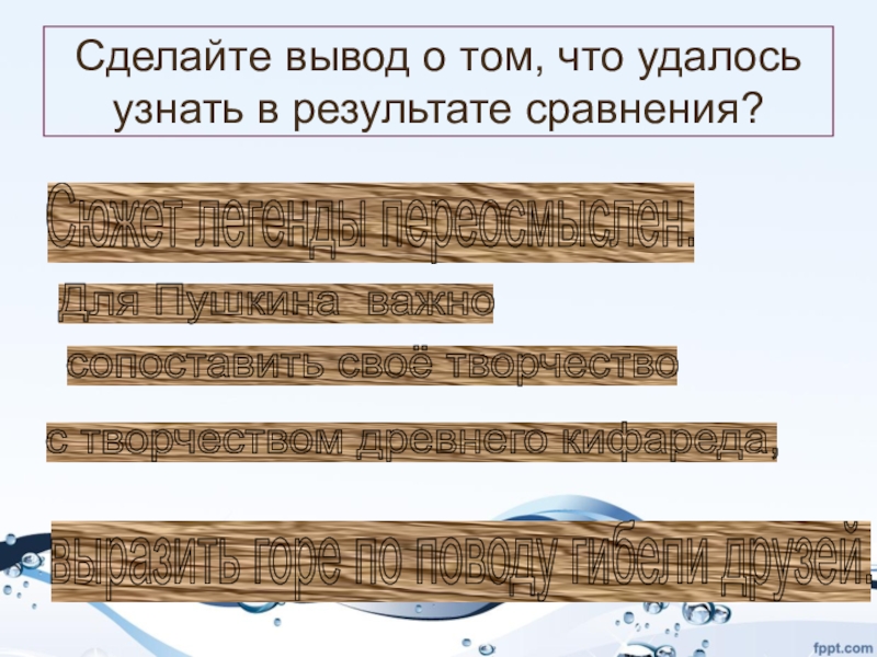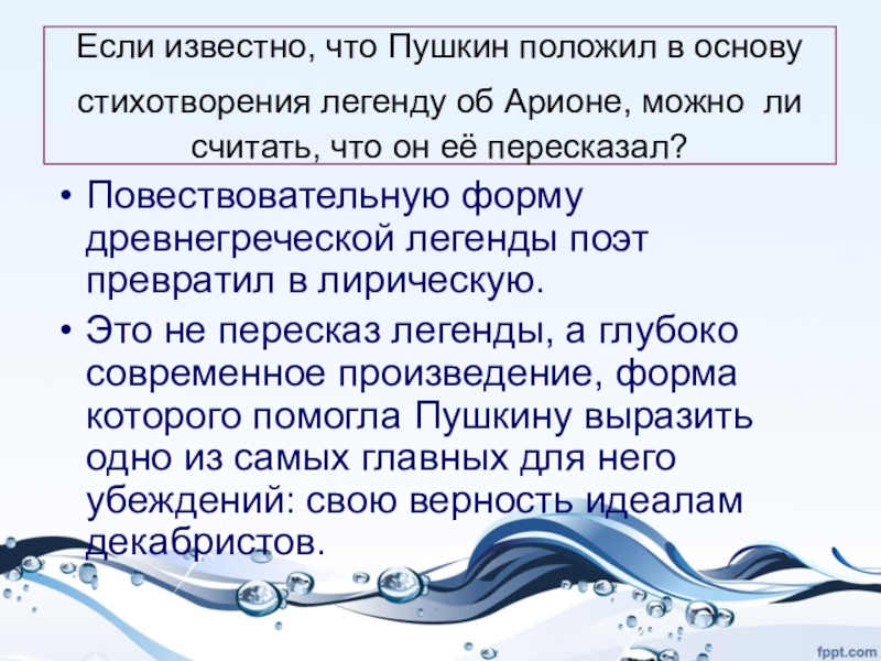 Повествовательную форму древнегреческой легенды поэт превратил в лирическую.