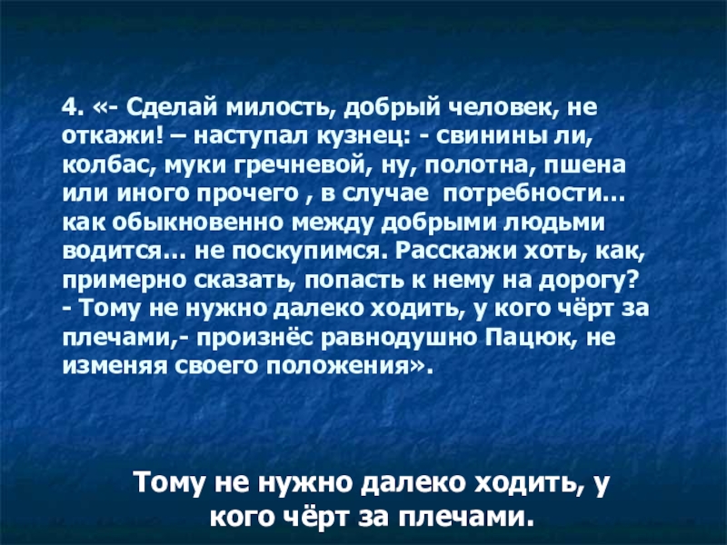 Пузатый Пацюк был когда-то запорожцем, а ещё знался, по всеобщему мнению, с нечистой силой.