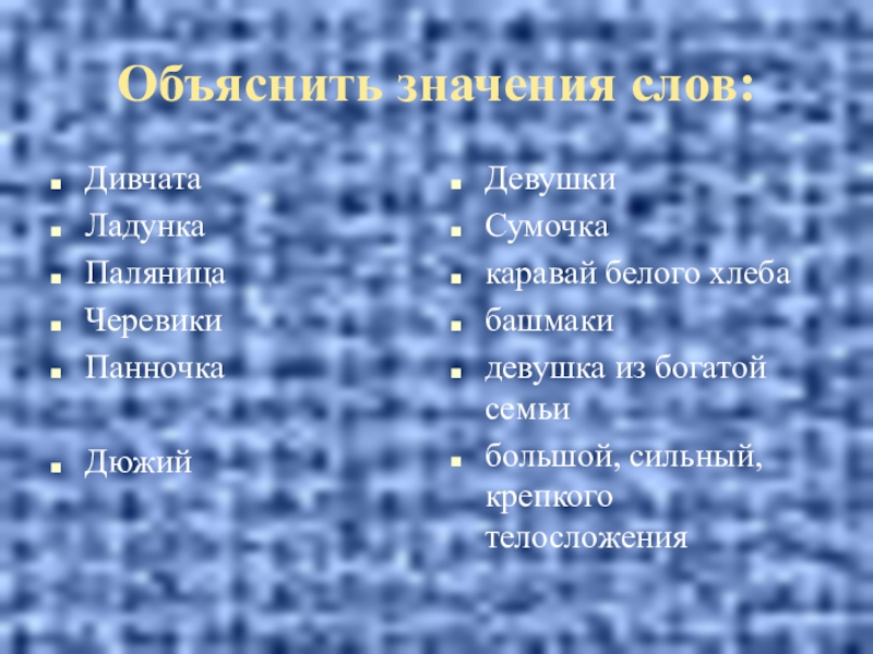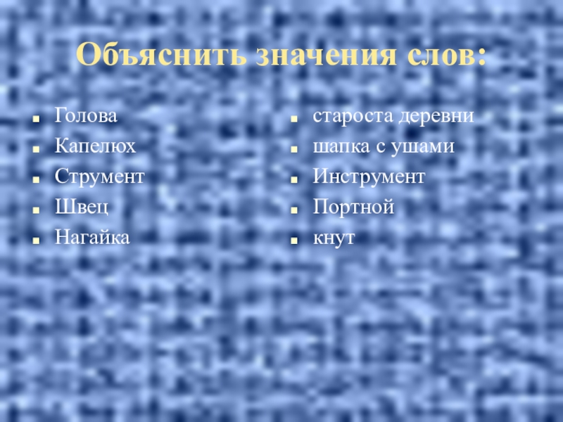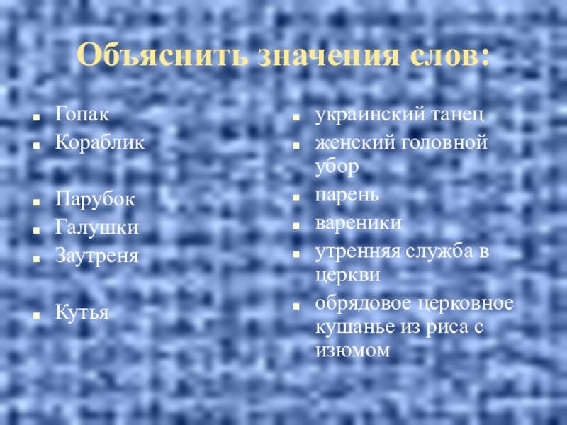 «Словарик». Здесь вам предстоит объяснить значения предложенных вам слов.