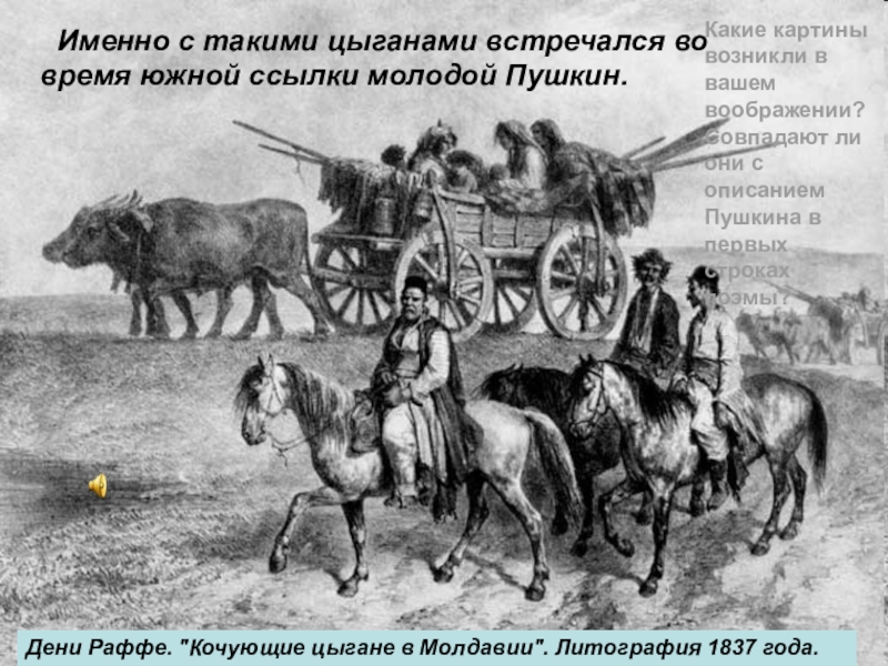 Дени Раффе. "Кочующие цыгане в Молдавии". Литография 1837 года.