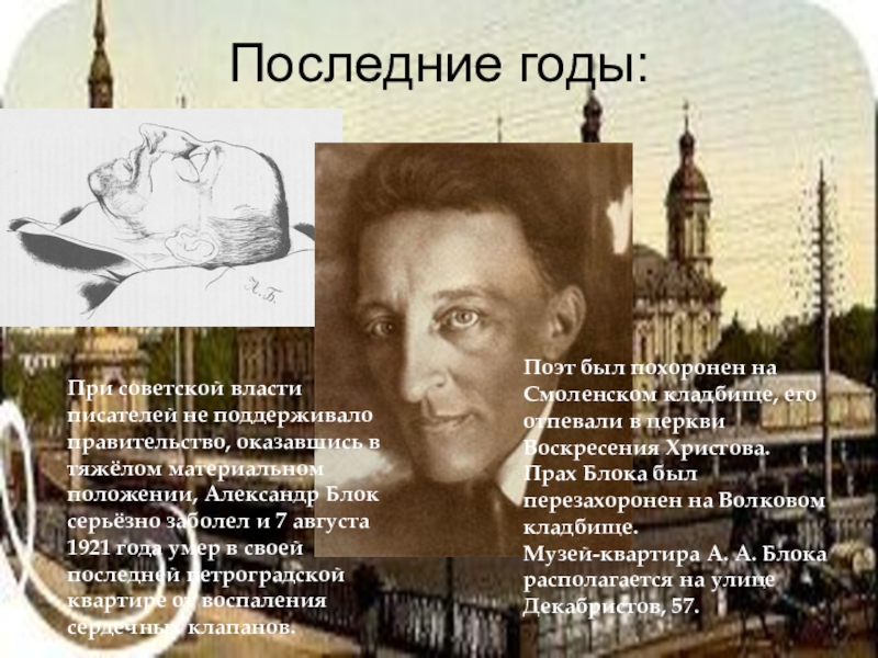 Прах Блока был перезахоронен на Волковом кладбище.