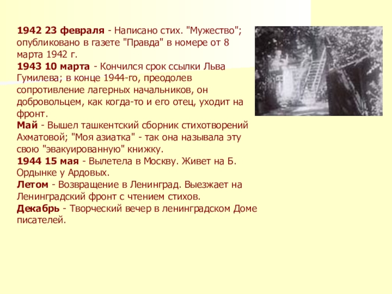 Слайд 131942 23 февраля - Написано стих. "Мужество"; опубликовано в газете "Правда"
