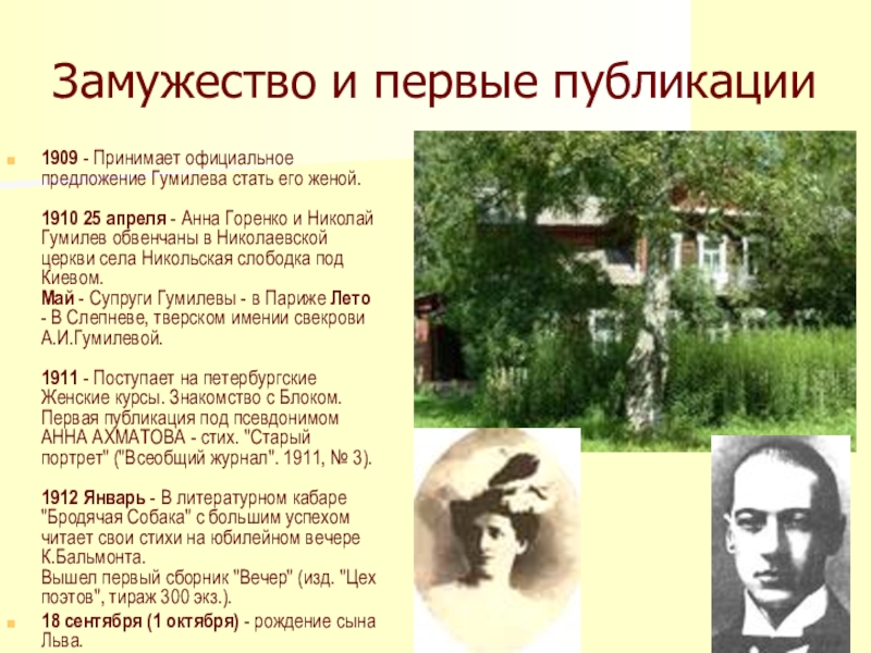 1910 25 апреля - Анна Горенко и Николай Гумилев обвенчаны в Николаевской церкви села Никольская слободка под Киевом.