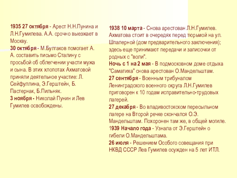 1935 27 октября - Арест Н.Н.Пунина и Л.Н.Гумилева. А.А. срочно выезжает в Москву.