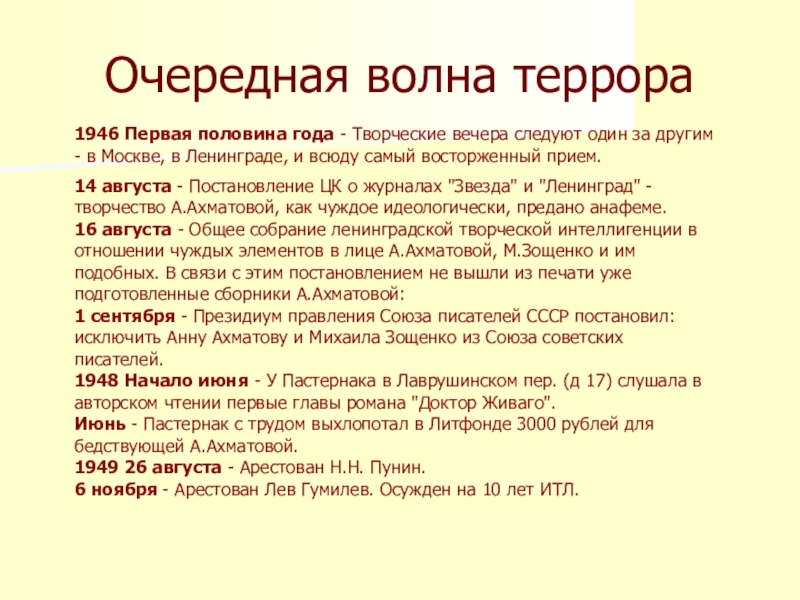 14 августа - Постановление ЦК о журналах "Звезда" и "Ленинград" - творчество А.Ахматовой, как чуждое идеологически, предано анафеме.