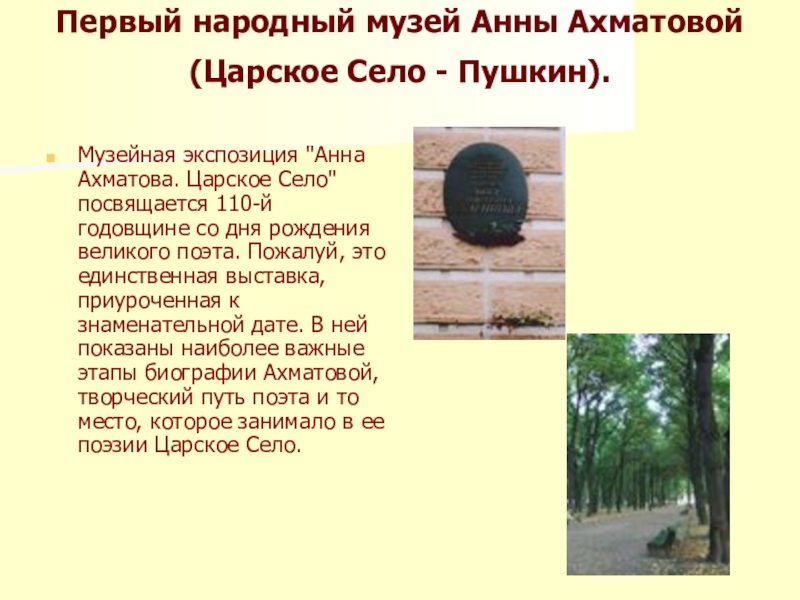 Слайд 23Первый народный музей Анны Ахматовой (Царское Село - Пушкин).