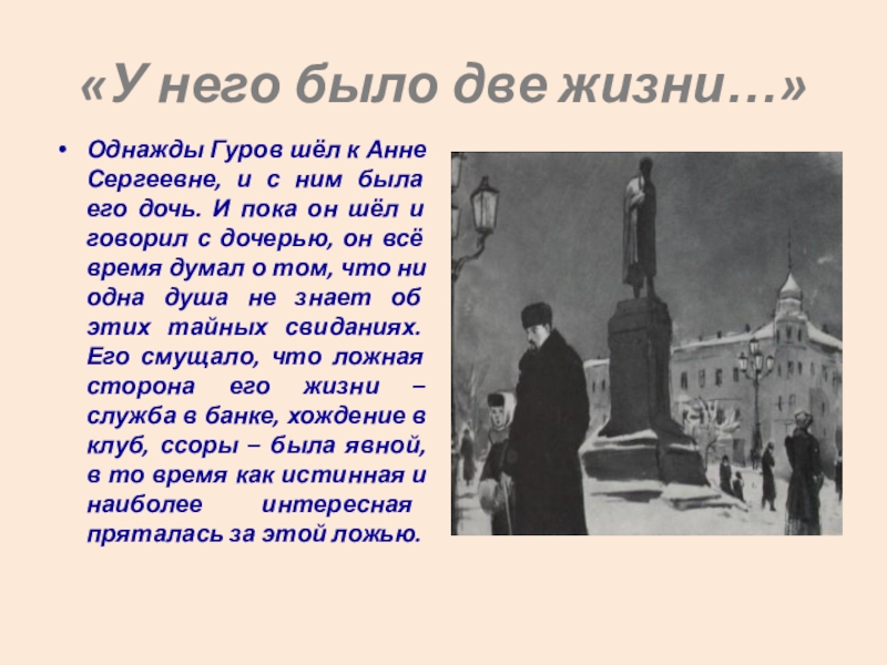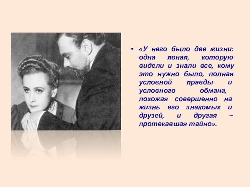 Слайд 22«У него было две жизни: одна явная, которую видели и знали
