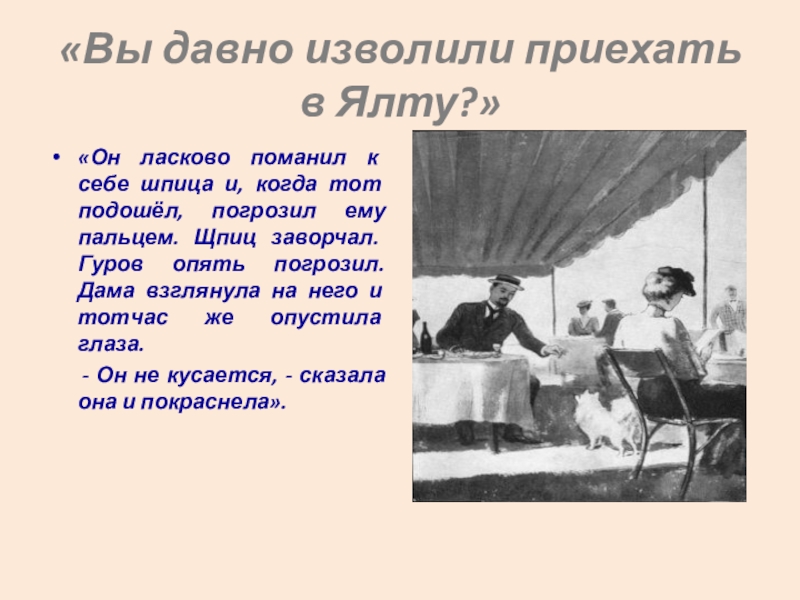 Слайд 5«Вы давно изволили приехать в Ялту?»