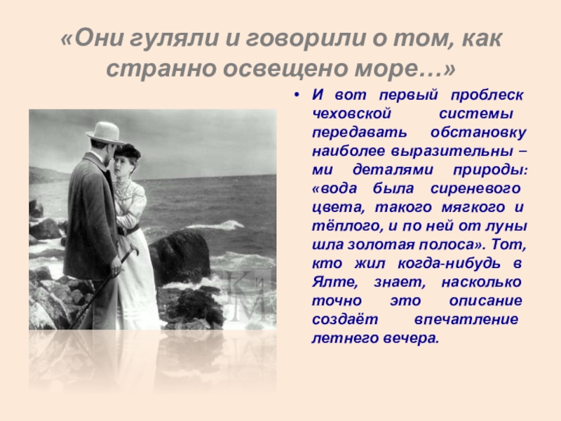 Слайд 7«Они гуляли и говорили о том, как странно освещено море…»