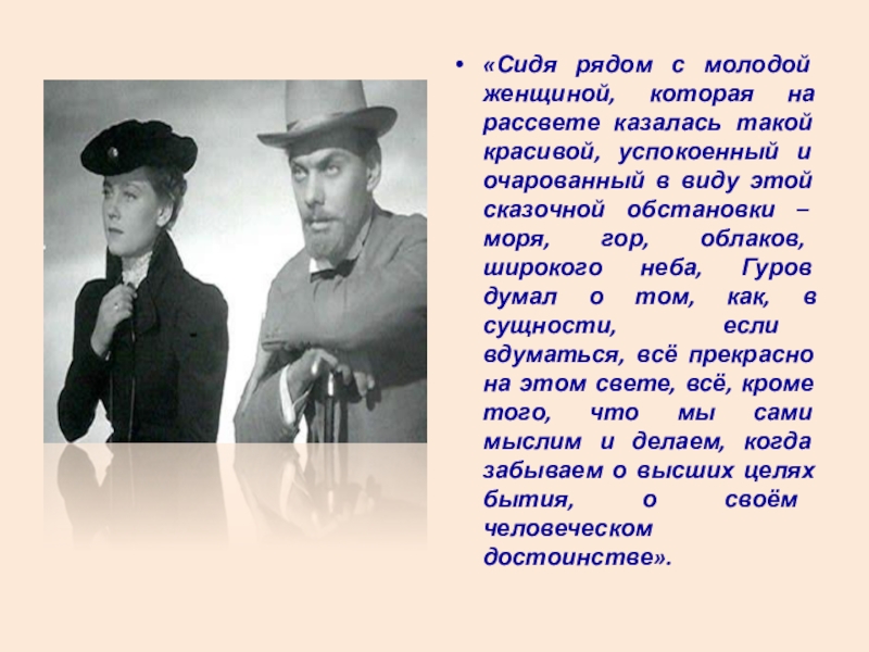 Слайд 12«Сидя рядом с молодой женщиной, которая на рассвете казалась такой красивой,