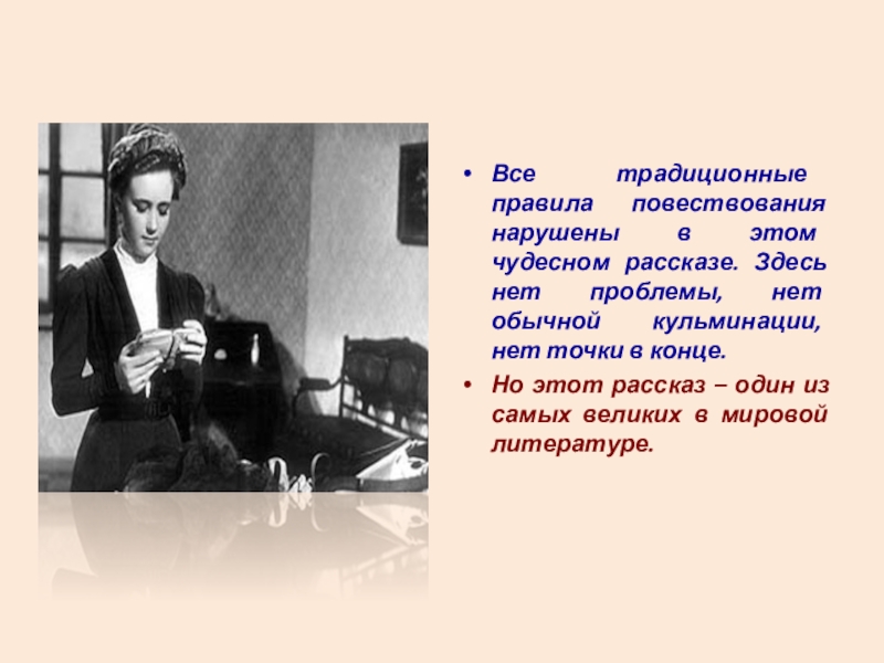 Слайд 26Все традиционные правила повествования нарушены в этом чудесном рассказе. Здесь нет