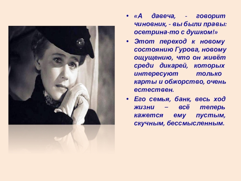 Слайд 16«А давеча, - говорит чиновник, - вы были правы: осетрина-то с