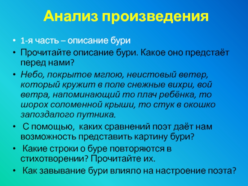 Прочитайте описание бури. Какое оно предстаёт