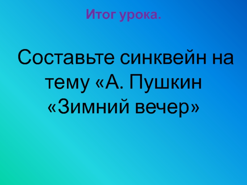 Составьте синквейн на тему «А. Пушкин «Зимний вечер»