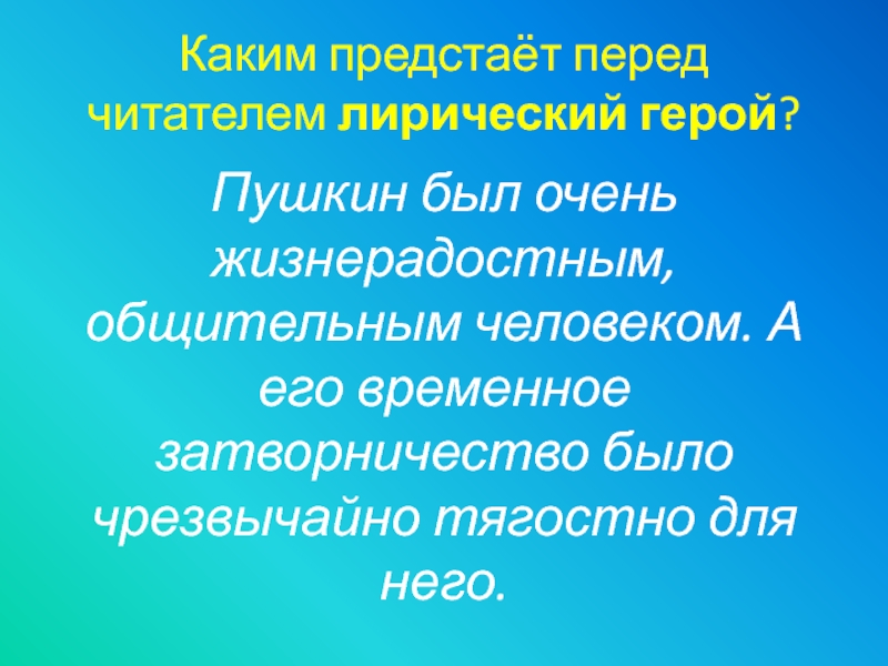 Слайд 20Каким предстаёт перед читателем лирический герой?