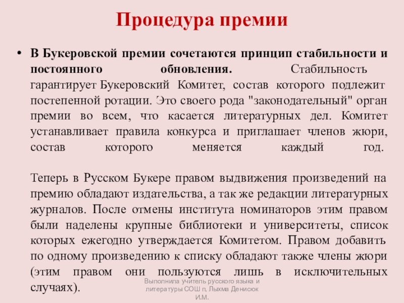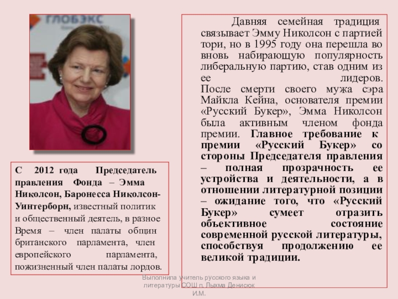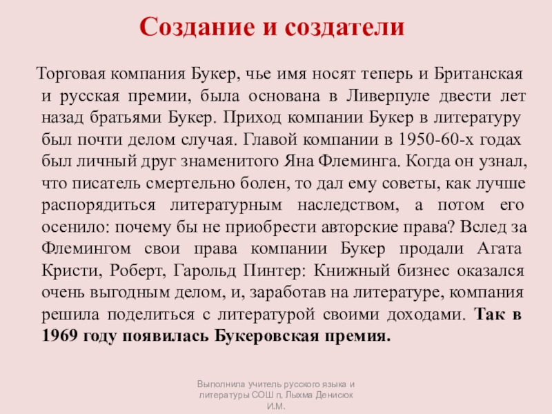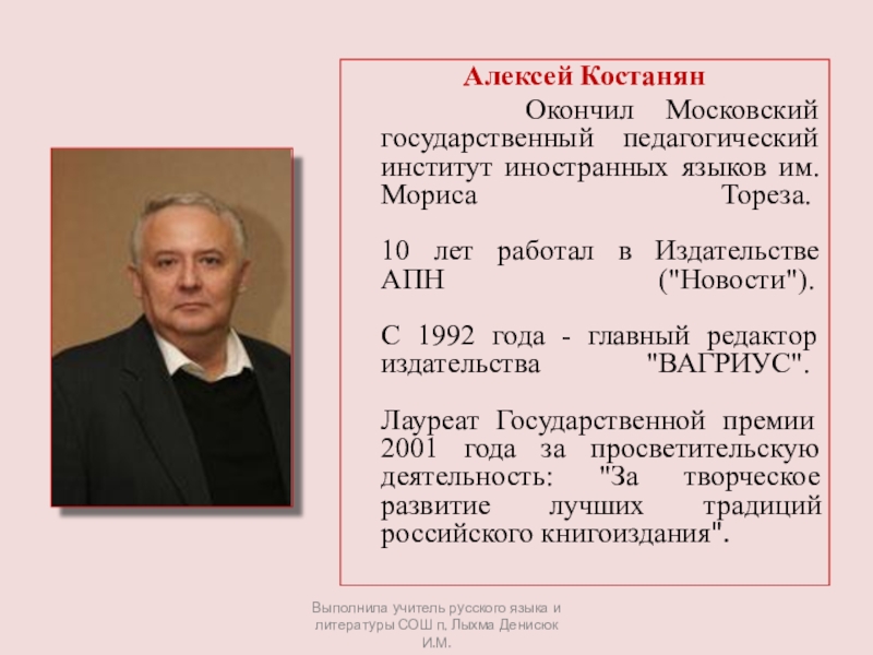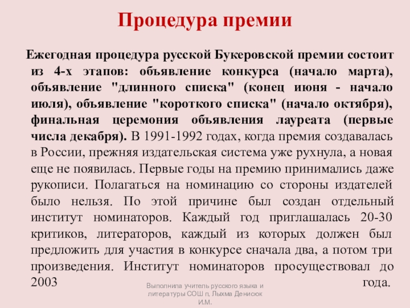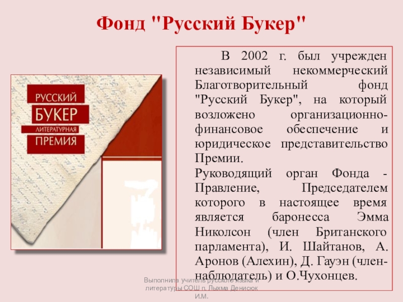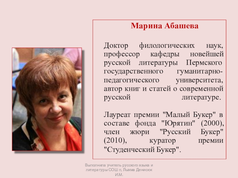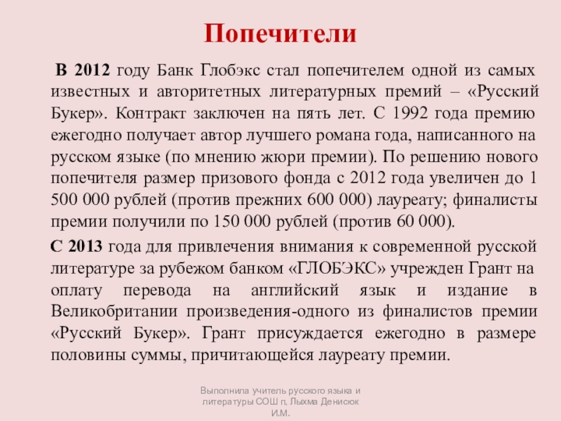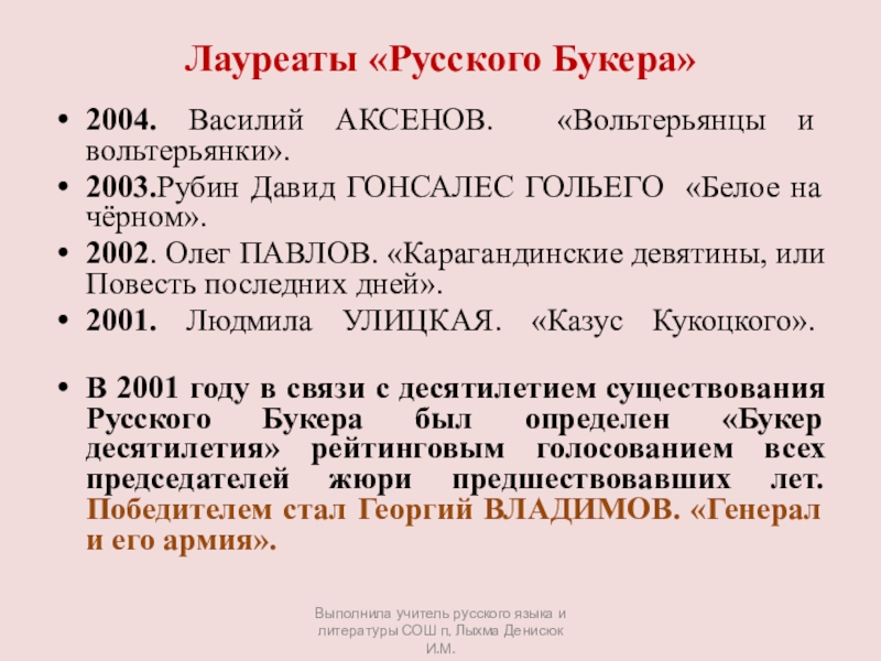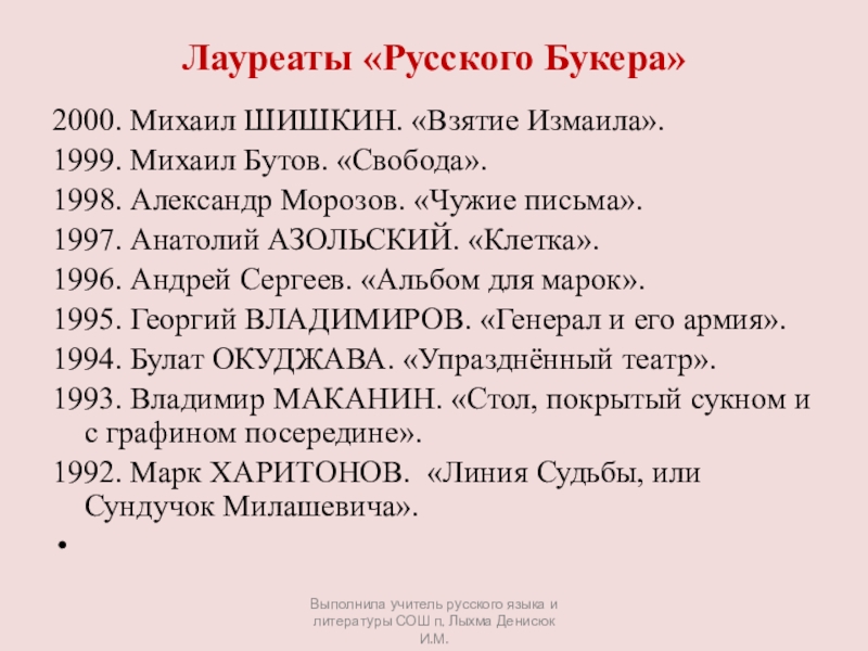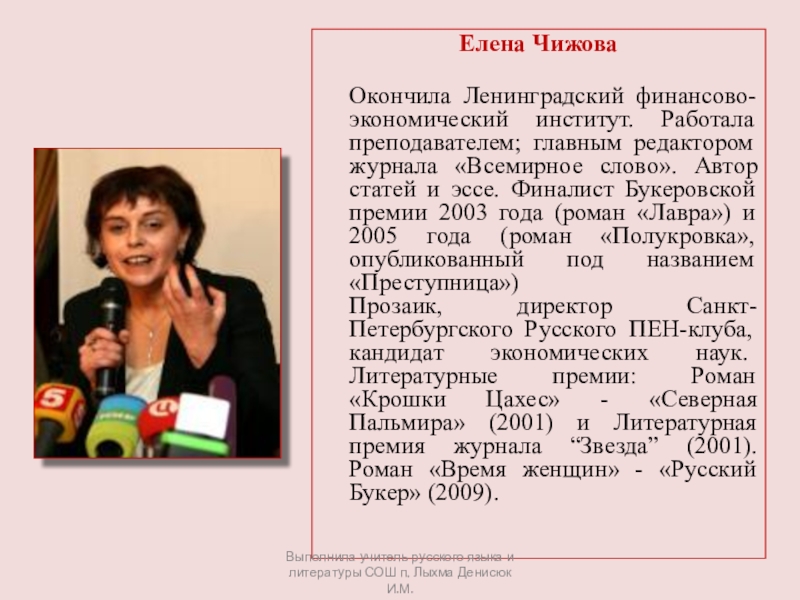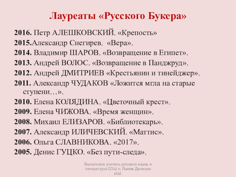 Выполнила учитель русского языка и литературы СОШ п. Лыхма Денисюк И.М.