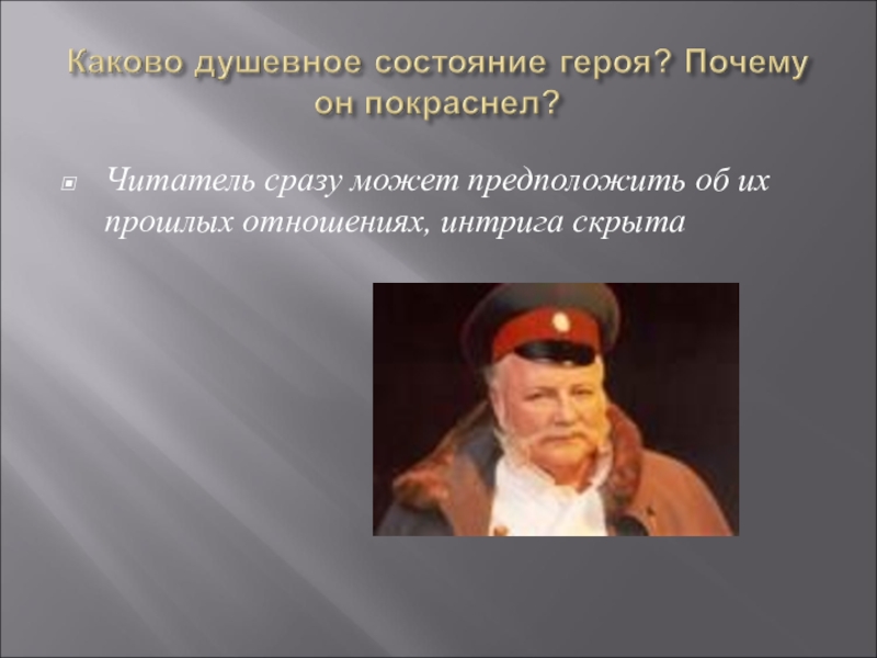 Слайд 8Читатель сразу может предположить об их прошлых отношениях, интрига скрыта