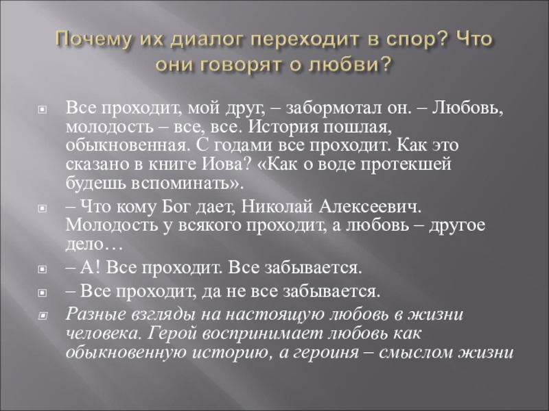 Слайд 10Все проходит, мой друг, – забормотал он. – Любовь, молодость –