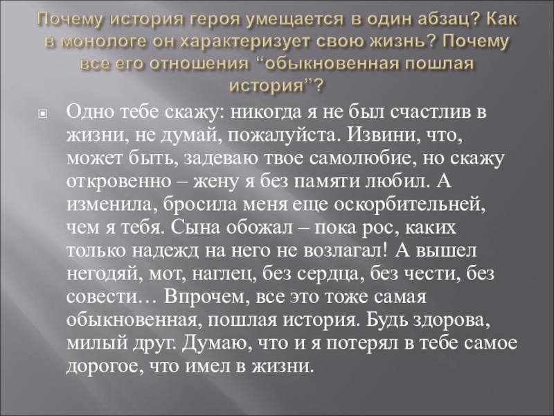 Слайд 13Одно тебе скажу: никогда я не был счастлив в жизни, не