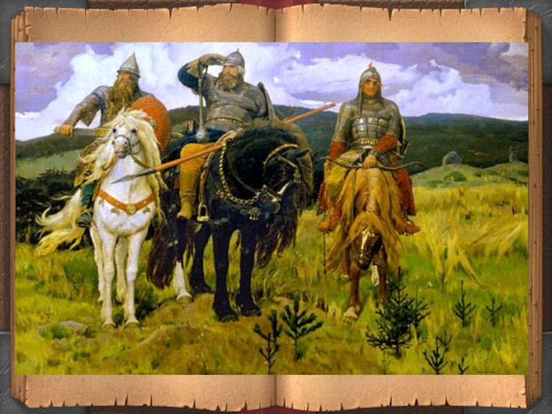 Богатыри: Илья Муромец, Добрыня Никитич, Алеша Попович.