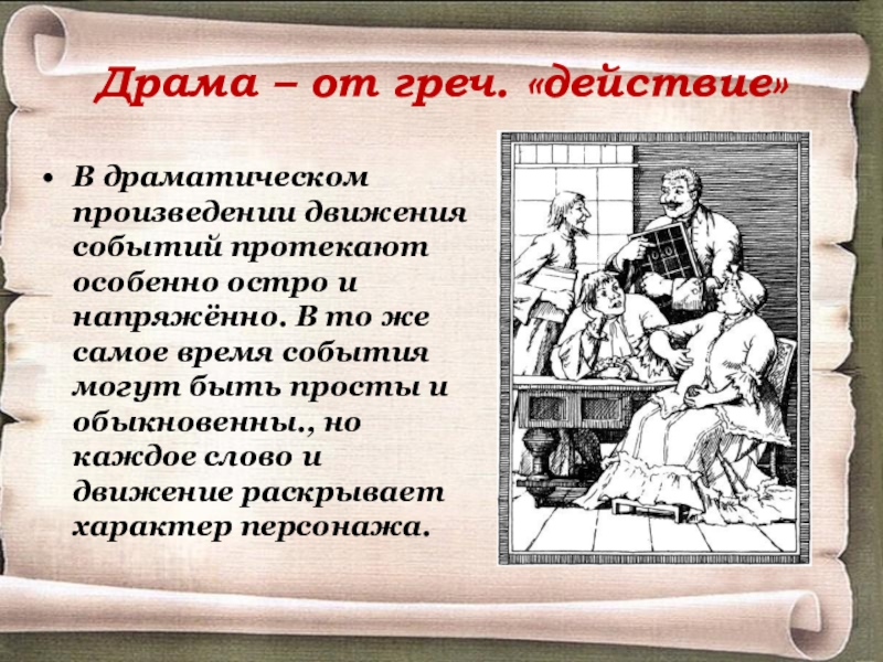 Слайд 12Драма – от греч. «действие»