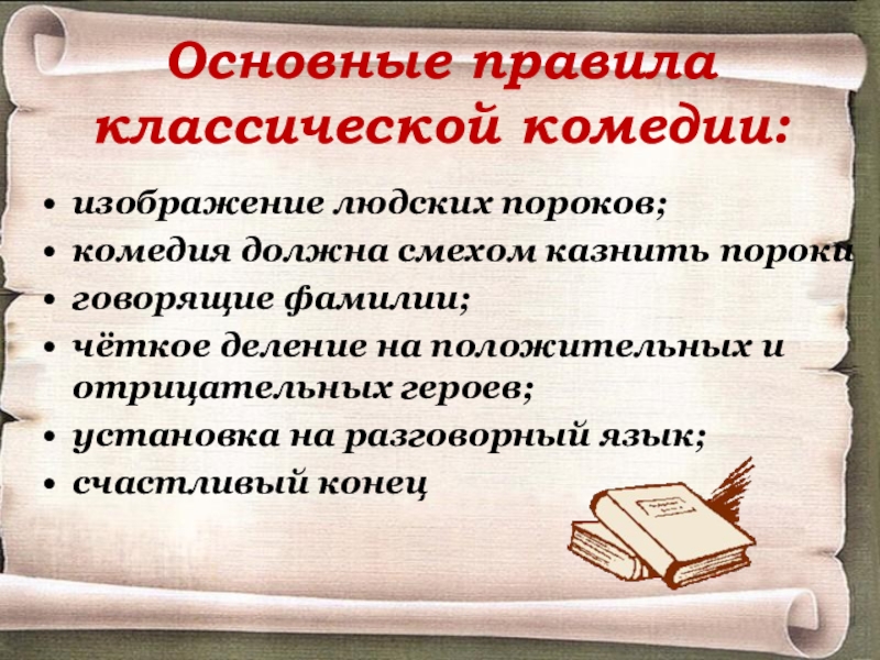 Слайд 14Основные правила классической комедии: