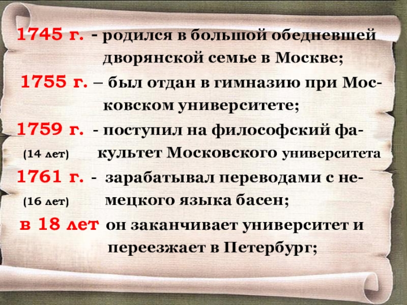 1759 г. - поступил на философский фа-