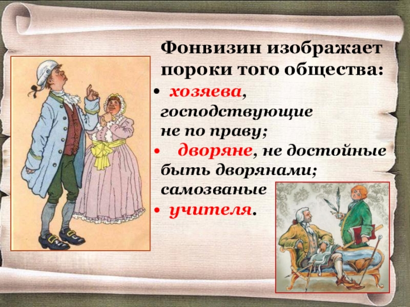 Слайд 9Фонвизин изображает пороки того общества: