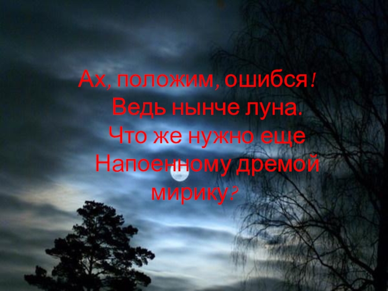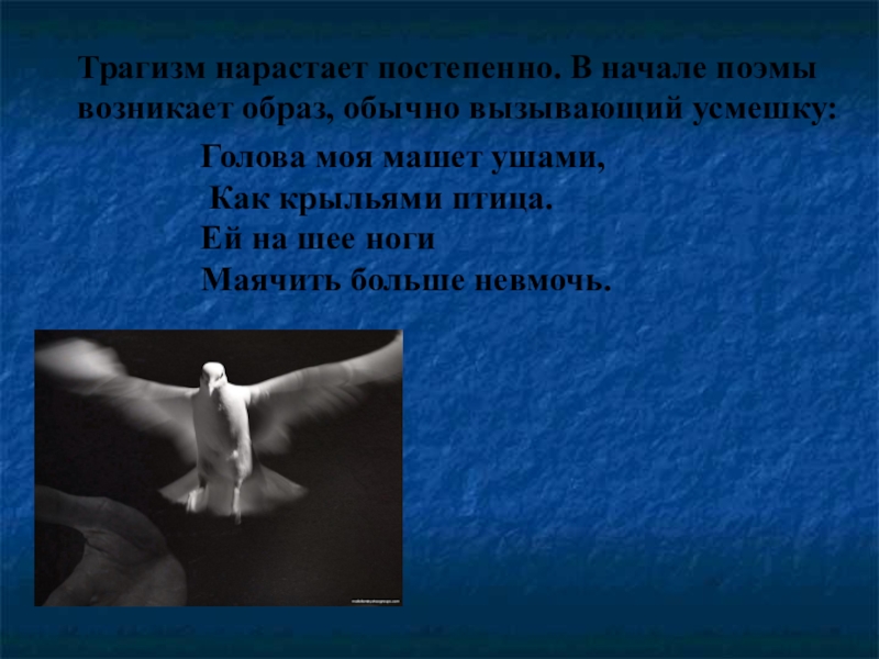 Трагизм нарастает постепенно. В начале поэмы возникает образ, обычно вызывающий усмешку: