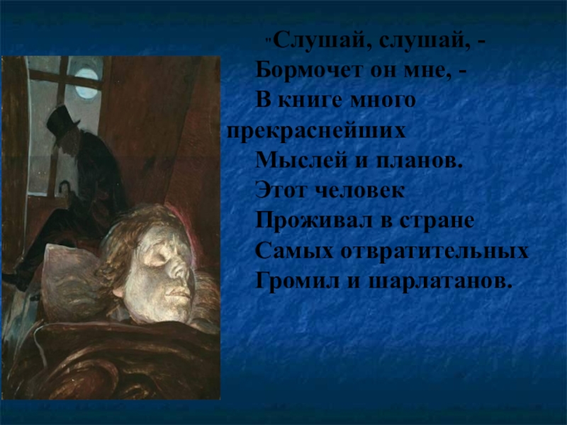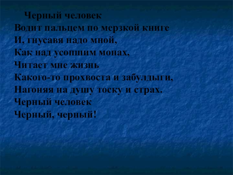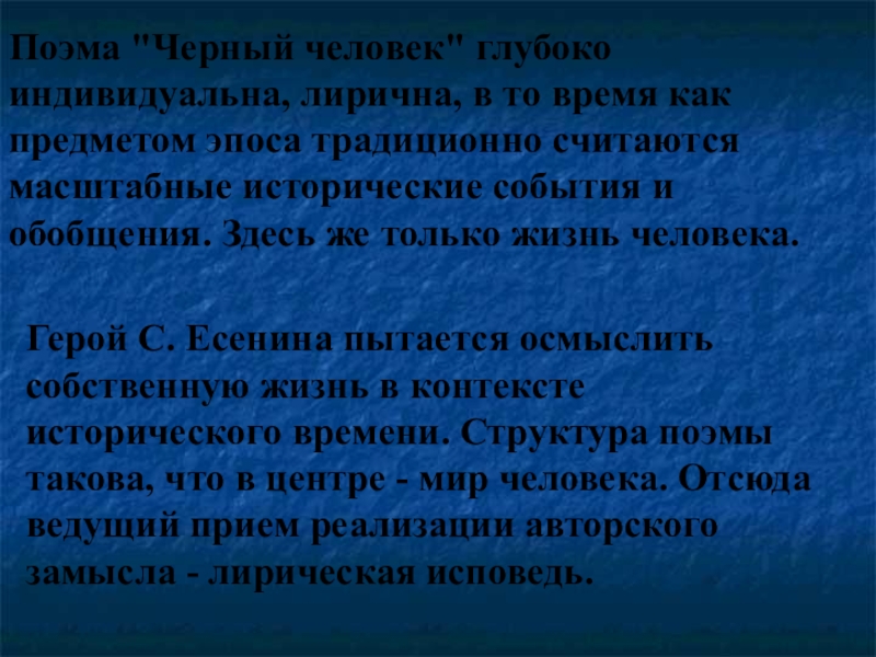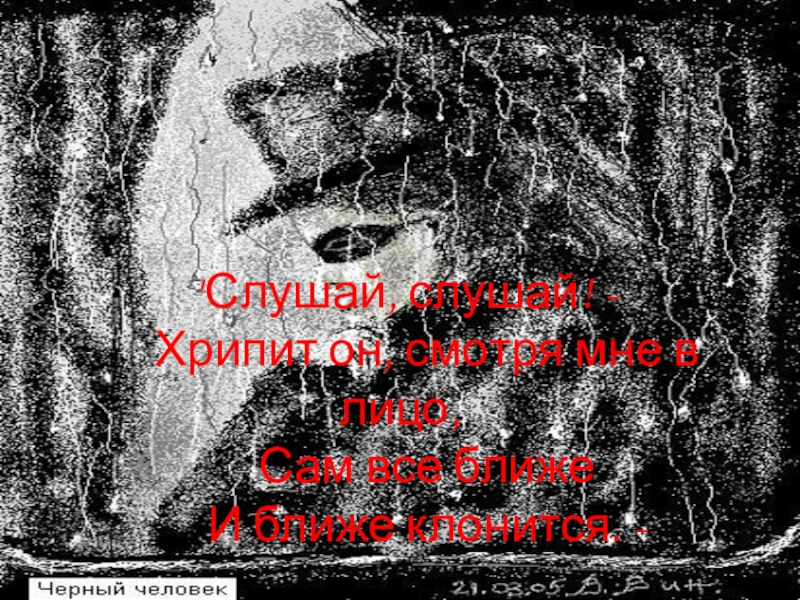 Слайд 94Поэма "Черный человек" глубоко индивидуальна, лирична, в то время как предметом