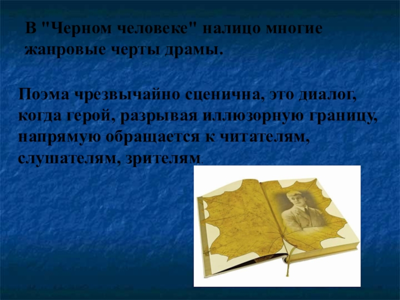 Слайд 93В "Черном человеке" налицо многие жанровые черты драмы.